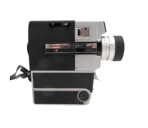 The Sankyo CM400 Super-8 camera heeft een 8.5-35mm f1.8 zoomlens en werd gemaakt in Japan vanaf 1969.
